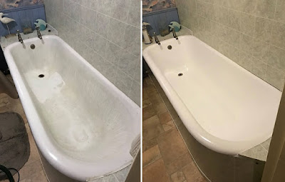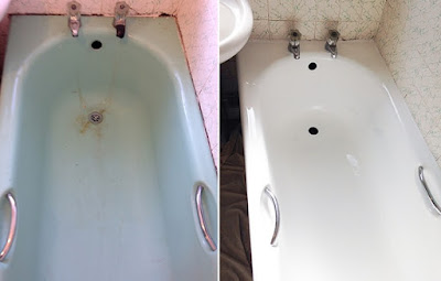 The result is a glossy bath that looks like a new bath - at a fraction of the cost. What's more, the newly-applied surface is very strong, resistant to hot water, easy to clean, guaranteed for 12 months, and will stay looking like new for years if it's properly cared for.