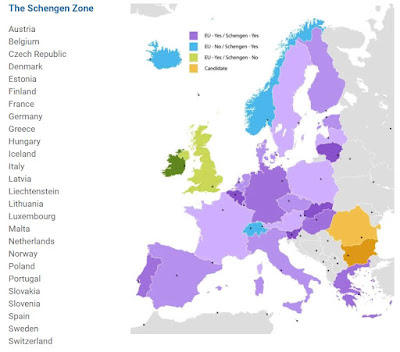 The Schengen area covers most EU countries, except Ireland and the countries that will soon join the zone; Romania, Bulgaria, Croatia, and Cyprus. Although not a member of the EU, countries like; Norway, Iceland, Switzerland, and Liechtenstein also belong to the Schengen zone.